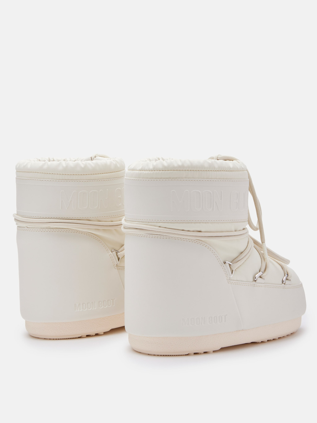 Model Moon Boot ICON Low Rubber w odcieniu Cream to elegancka, minimalistyczna odsłona kultowego śniegowca w wersji o gumowym, matowym wykończeniu. Dzięki kremowej palecie barw i futurystycznej sylwetce tworzy stylowy, premium zimowy look.